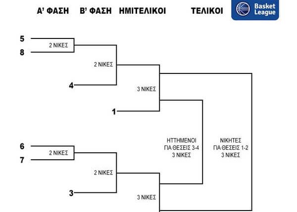 Στην πρώτη φάση των πλέι οφ (ενδεικτικές ημερομηνίες 19/4-26/4) θα μετέχουν οι ομάδες που τερμάτισαν στις θέσεις 5-8 της βαθμολογίας της κανονικής περιόδου. Από αγώνες που θα κριθούν στις δύο νίκες θα αναδειχθούν δύο οι ομάδες οι οποίες θα αντιμετωπίσουν στην επόμενη φάση (29/4-7/5) τα σωματεία που τερμάτισαν στις θέσεις 3-4 της κανονικής περιόδου.