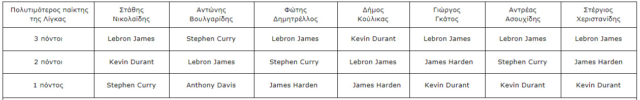 Οι υπόλοιποι: Stephen Curry 8, Kevin Durant 8, James Harden 6, Anthony Davis 1