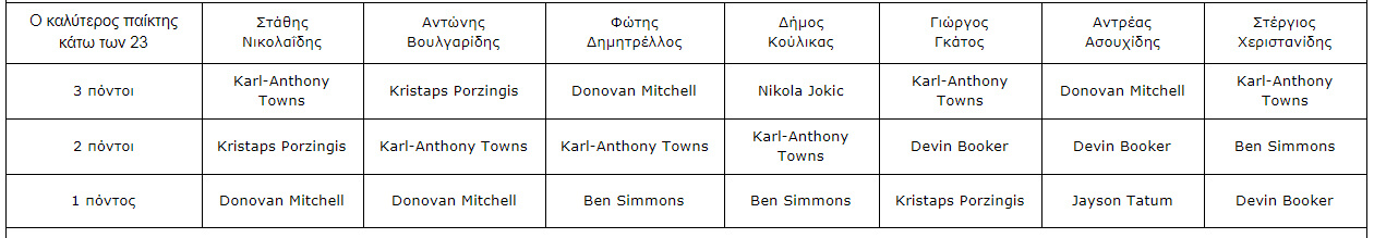 Οι υπόλοιποι: Donovan Mitchell 8, Kristaps Porzingis 6, Devin Booker 5, Ben Simmons 4, Nikola Jokic 3, Jayson Tatum 1