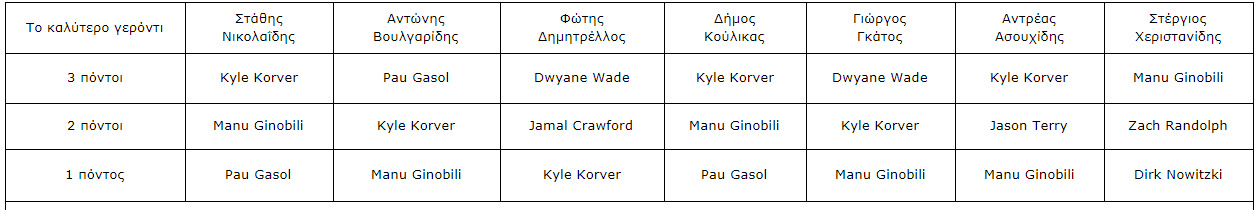 Οι υπόλοιποι: Manu Ginobili 10, Dwyane Wade 6, Pau Gasol 5, Jamal Crawford 2, Jason Terry 2, Zach Randolph 2, Dirk Nowitzki 1